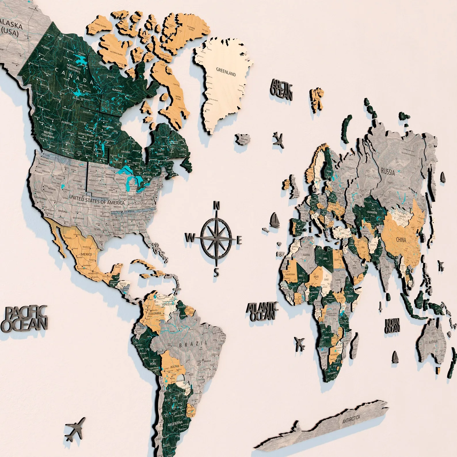 Transform a plain wall into a story of your journeys with this 3D wood world map push pin wall decoration. Each continent is carefully cut from quality plywood and layered to create a subtle depth effect that stands out without overwhelming your space. Smoothly sanded edges and precise engraving give the map a clean, modern look that suits both minimalist and cozy interiors.