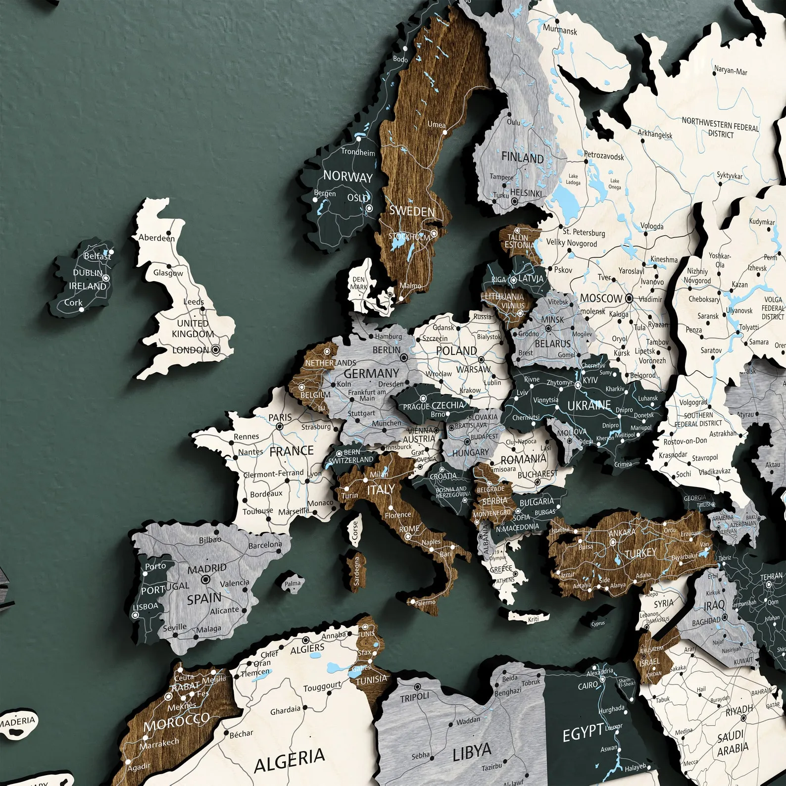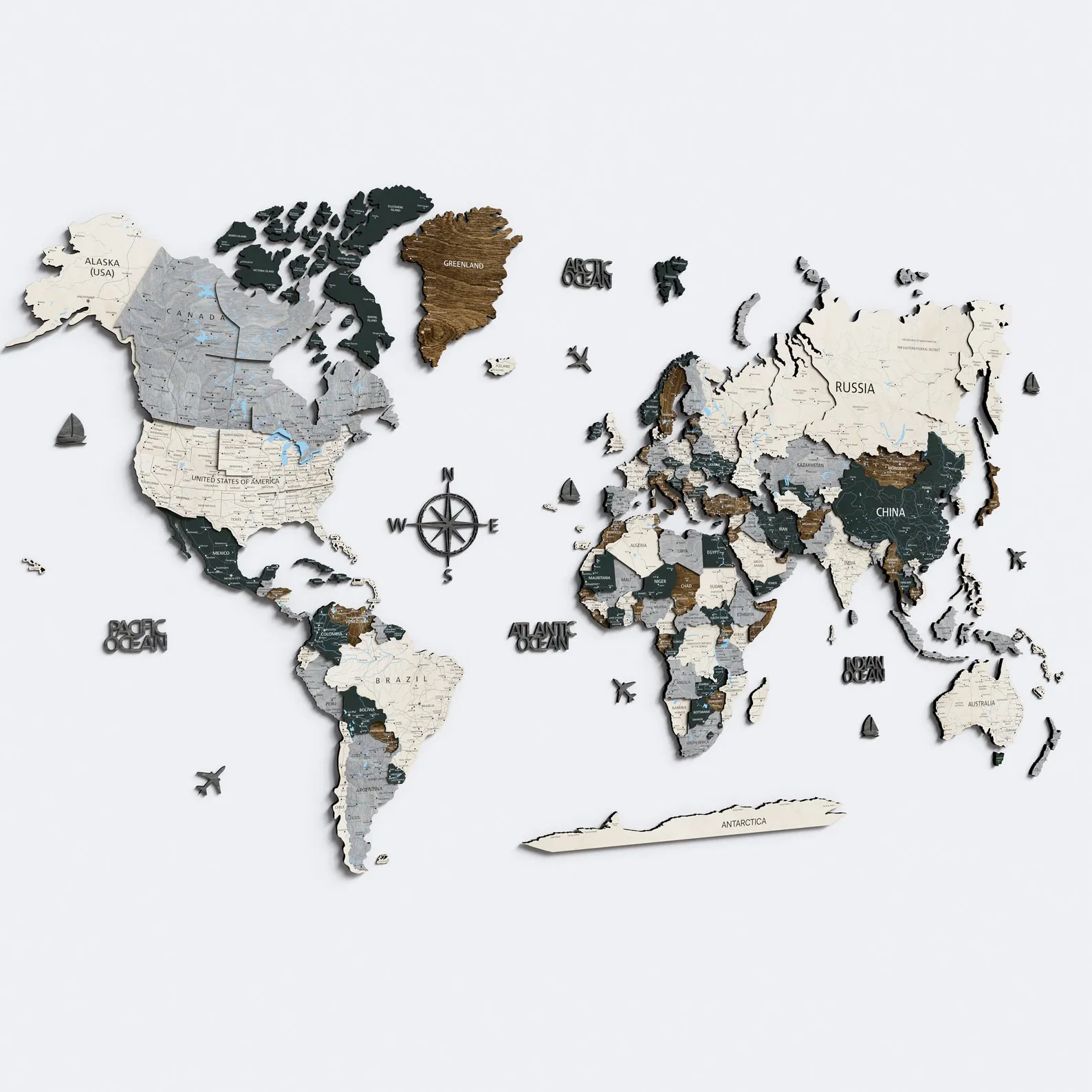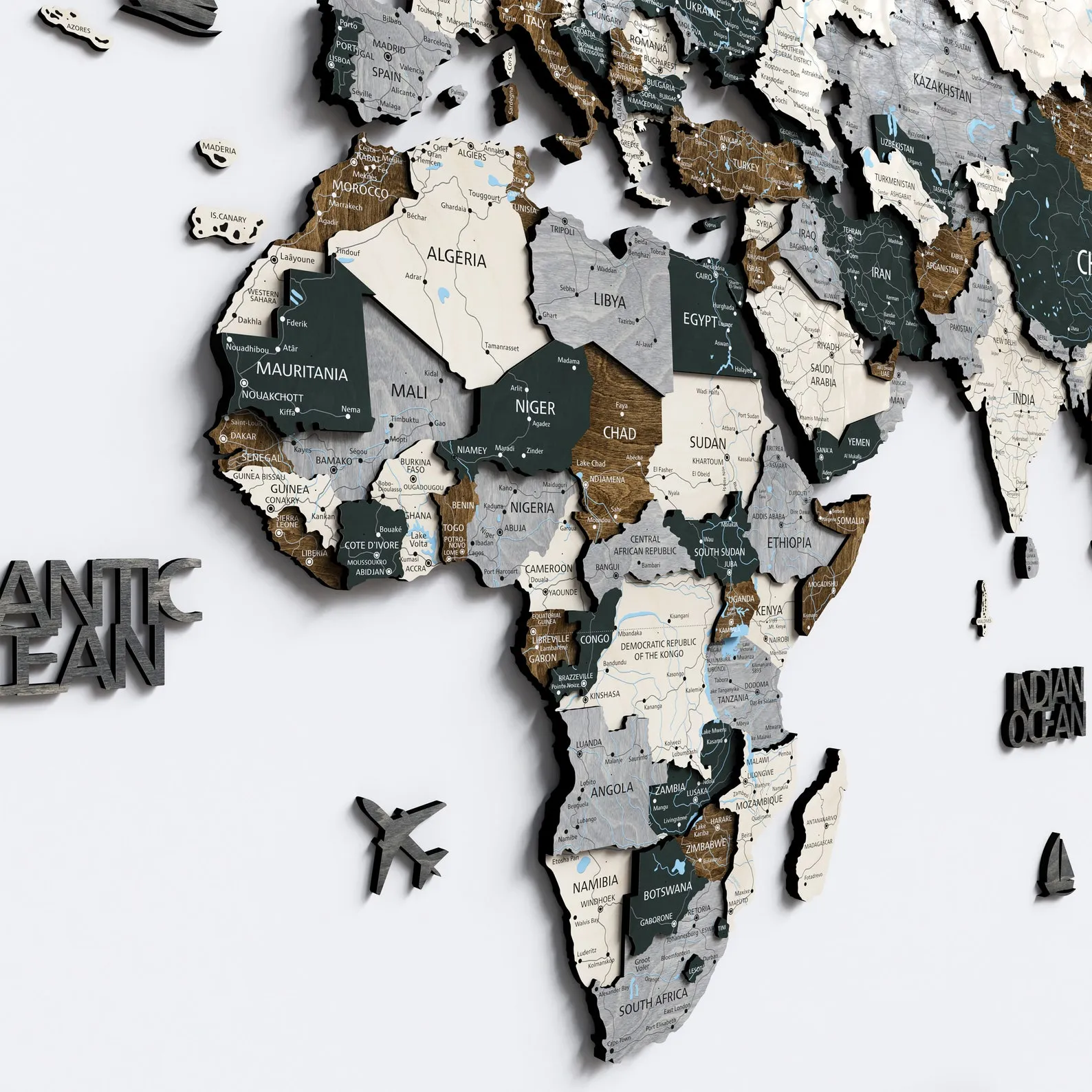 Keep your travel dreams in sight with this 3D wooden world map travel board for wall display. Crafted from quality wood, the continents are cut with precision and layered to create a subtle shadow effect that gives the map dimension. The natural finish feels warm and organic, making it suitable for both modern and traditional interiors.
